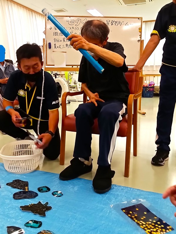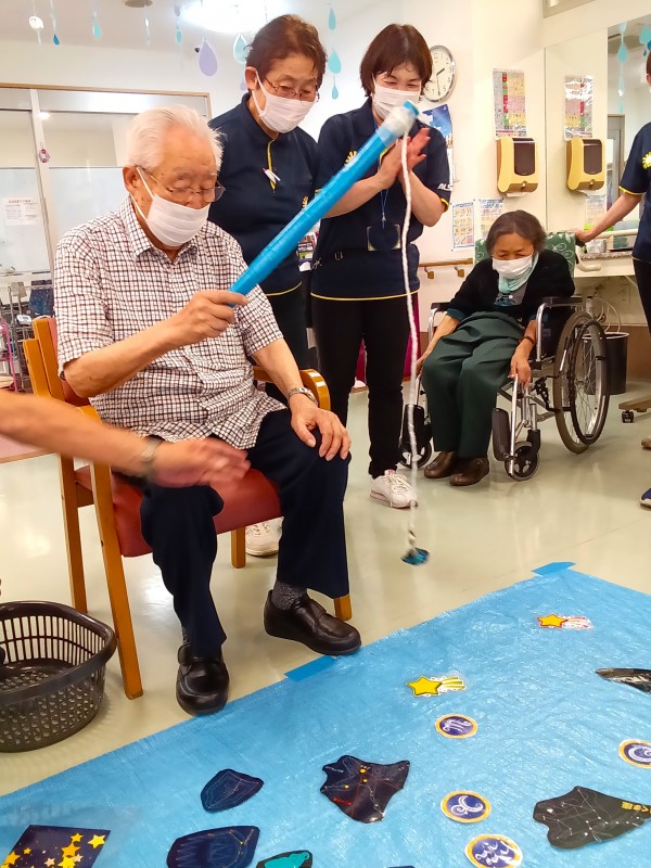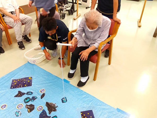 お空に見立てたブルーシート上にある星座を釣っていくだけ!