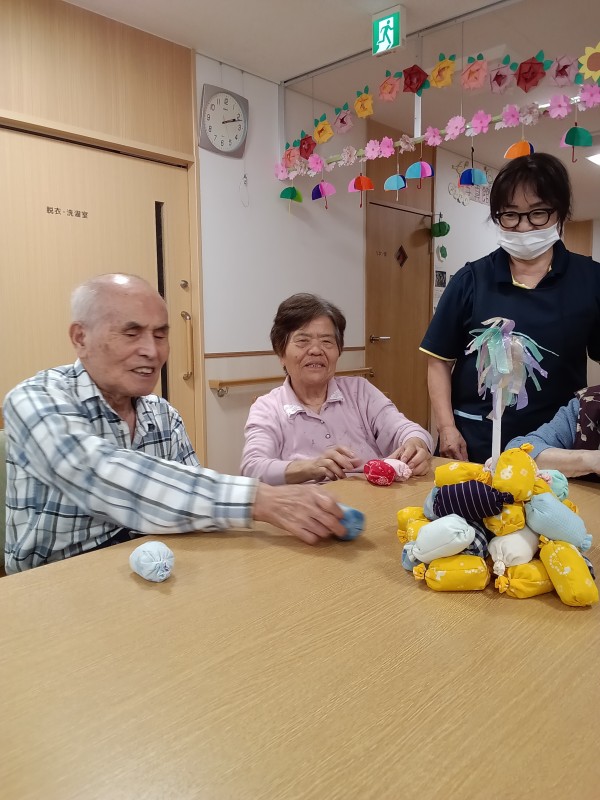 お手玉棒倒しでは、棒が倒れないように慎重に慎重にお手玉を一つずつ取っていきます。棒が斜めになるとヒヤヒヤドキドキです(*_*)
