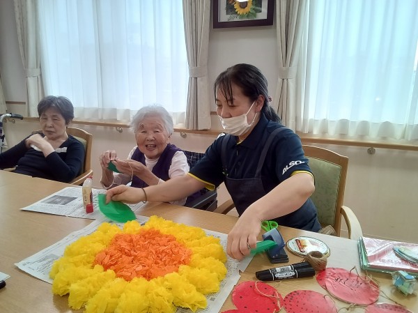 夏の飾りとして今年はヒマワリ作りに挑戦中!