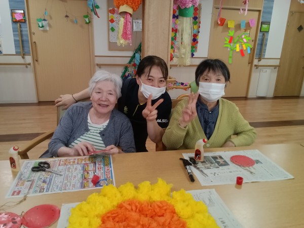 お花紙を丁寧に広げて可愛いお花をいっぱい作っていきます♪