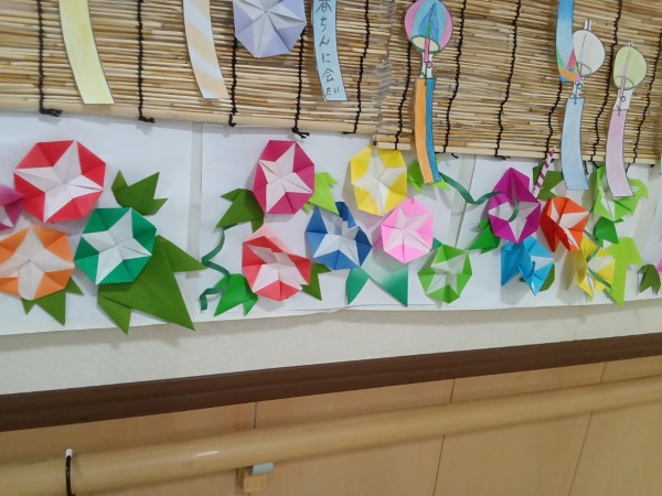 紫陽花は、折り紙で作成しました♬