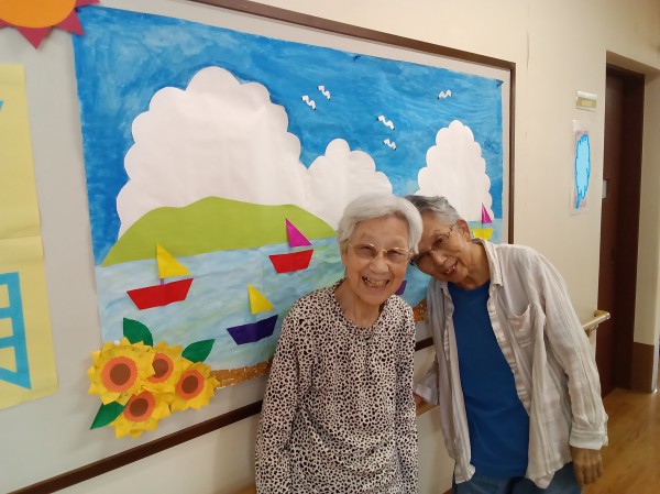 2階ご利用者様と一緒に製作した装飾、テーマは「夏の海」です。