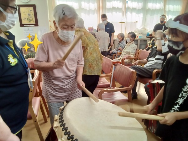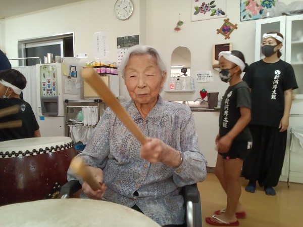 激しくかつ正確に、太鼓を叩く様子に、ご利用者様も感心しておりました。