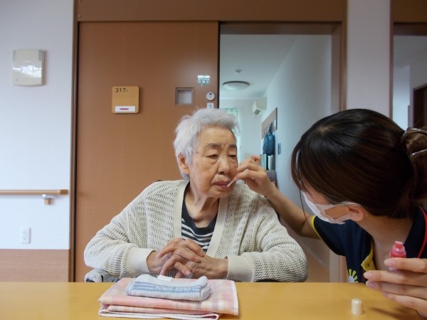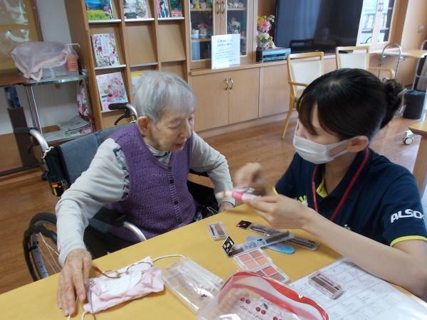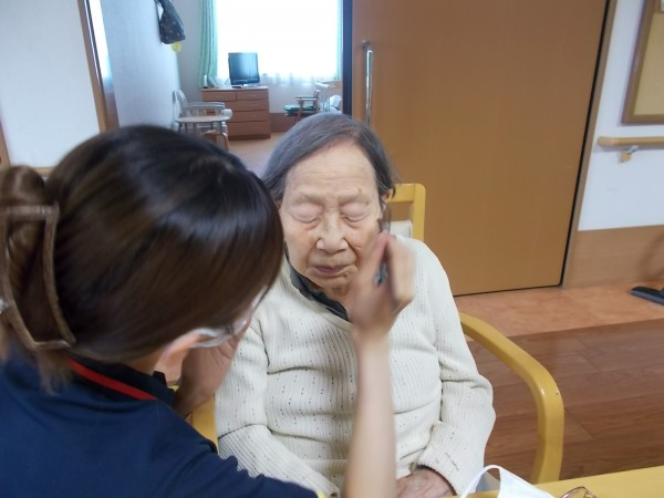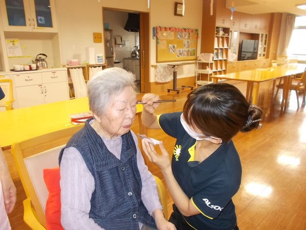 七夕まつりに参加されるご利用者様がメイクされている所にお邪魔しました。