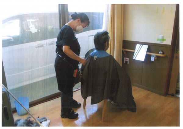 本日は【理美容】の日。事前のご予約での方のみ、デイサービスでカットできる便利なサービスです。皆様お好みのヘアスタイルを美容師に伝えカットしていただいています。夏暑いからなのか、皆様かなりバッサリと短くされている方が多かった様に思います。あちらこちらでカットされた利用者様への声掛けが聞こえてきました♪