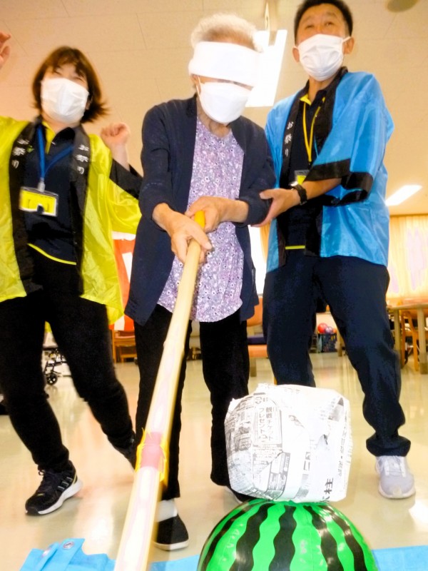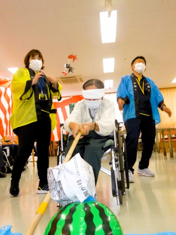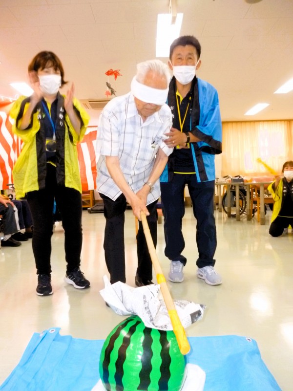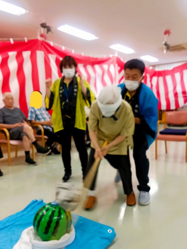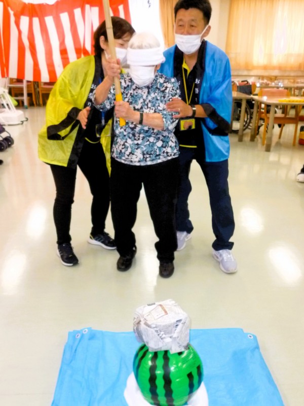 本当は本物のスイカをバチコーンッと割って頂きたいと思いましたが