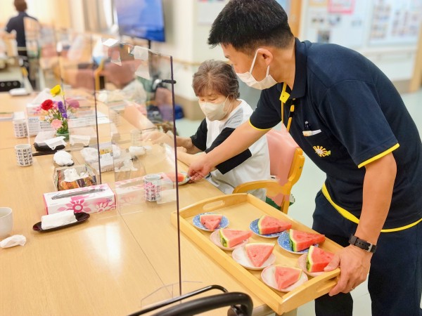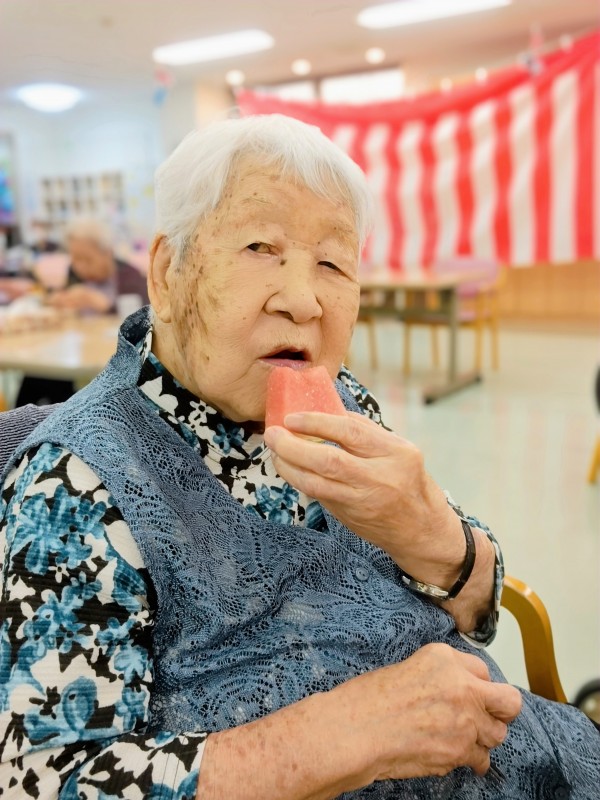 今年初めてスイカを食べるという方も多く「ハツモノだわ!」と喜んで頬張る方も!