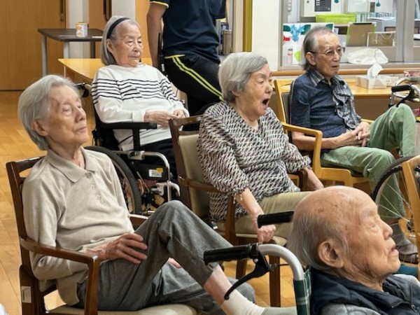 先日は健康増進課の岡田インストラクターが来て、入居者様に元気を注入してくれました!!