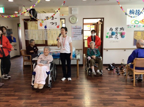 さあ、ホーム長とそれぞれの屋台担当者からのあいさつから祭の開催です!!(∩´∀`)∩
