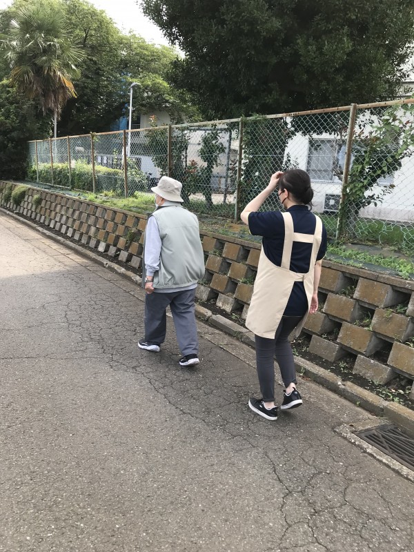 Y様は、行くぞ!と言わんばかりに前進されるので、スタッフが「もう少しゆっくり歩きましょう~」と話しています。