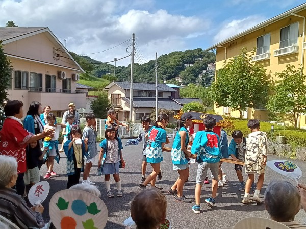 暑い中、子供たちは一所懸命神輿を揺らし、ホームやご入居者の安全や健康を祈念してくれました(*'▽')