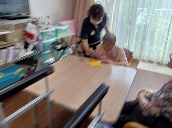 提灯や飾りの輪っか、天の川すべて折り紙で入居者様と一緒に完成させました('◇')ゞ