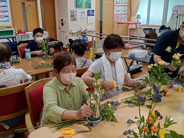 暑い中、クーラーの効いた避暑地(笑)遊・東浦和では毎月恒例のフラワーアレンジメント教室がありました。