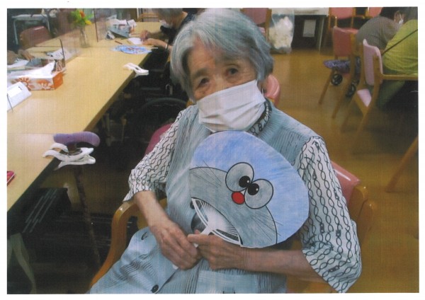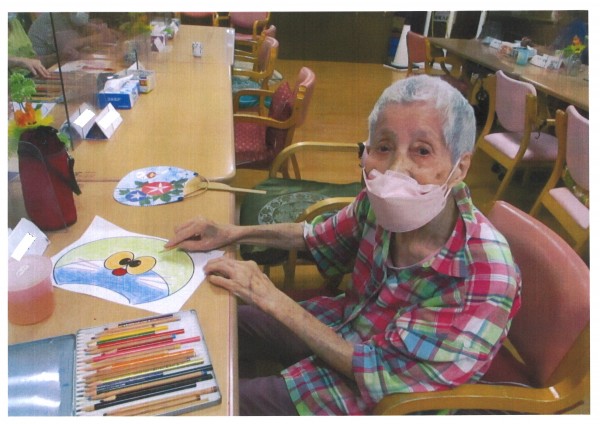毎年恒例の『夏まつり』を盛り上げるべく、利用者の皆様に飾りと『うちわ』を作っていただきました。かわいいキャラクターに色を付け、うちわに張り付ける手作りうちわです。なかなか好評で皆さまとても熱心に取り組んでくださいました。たくさんのカワイイうちわができました♪飾りもたくさん作っていただいて、夏祭りも盛り上がること間違いなしですね、楽しみです♪