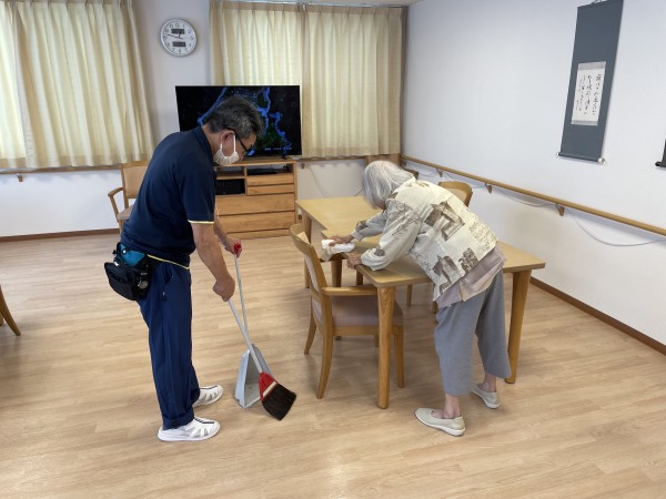 役割を持っていただくことにより、生活と心のリズムを安定させ職員とのコミュニケーションにより脳の活性化を促進し、笑顔の好循環に繋がると考えます。
