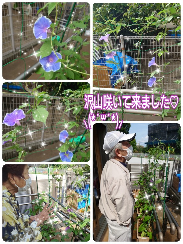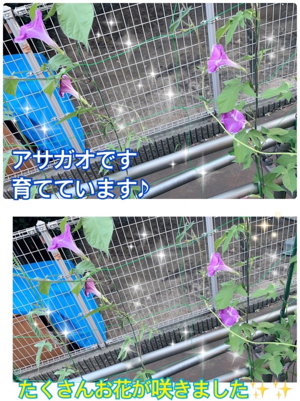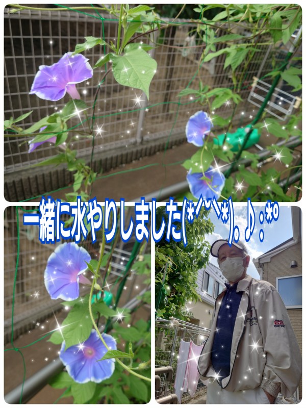 朝顔に水やりを行い。笑顔が溢れます( *´艸`)