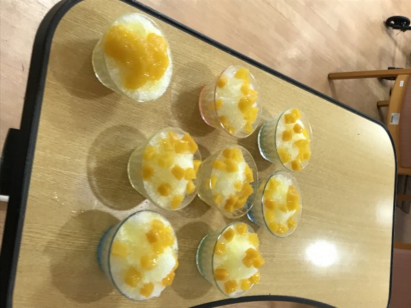 ホームでブームになりつつあるかき氷を作りました♪今回はマンゴーをトッピングしてみました!夏の熱中症の多くは室内で起こるそうですね。冷房を適切に使用し、水分もこまめにおすすめして予防に努めたいと思います♪皆様に元気で夏を乗り越えて頂きたいです!