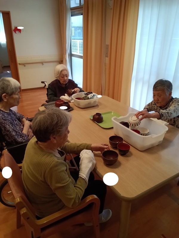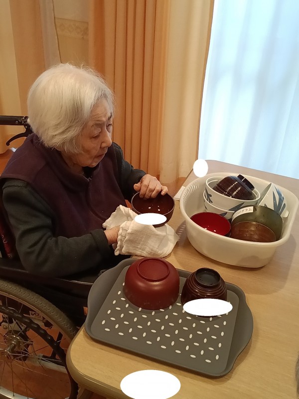 食事後、ご利用者様が率先と食器拭きをして下さりました♪