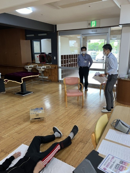 自宅内で、地震の影響によりに物が散乱する想定の中で高齢者役の職員を相手に練習を行っている様子です。ホーム職員や本部の職員が練習に付き合ってくださり、寝る間も惜しんで練習しました。結果はどうなるでしょう・・・次回以降のブログをお楽しみに!