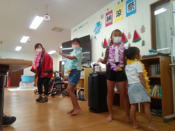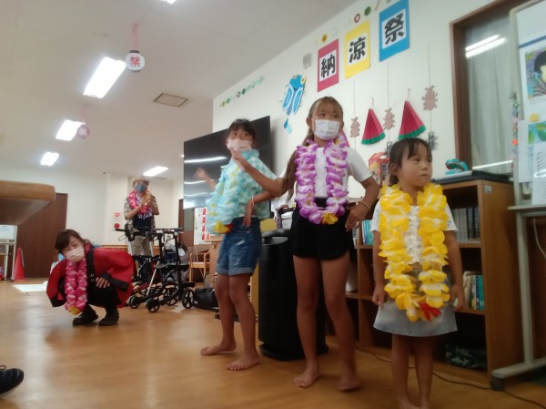 最後には、職員によるフラダンスがありました。職員の子どもたちも参加してくれました。
