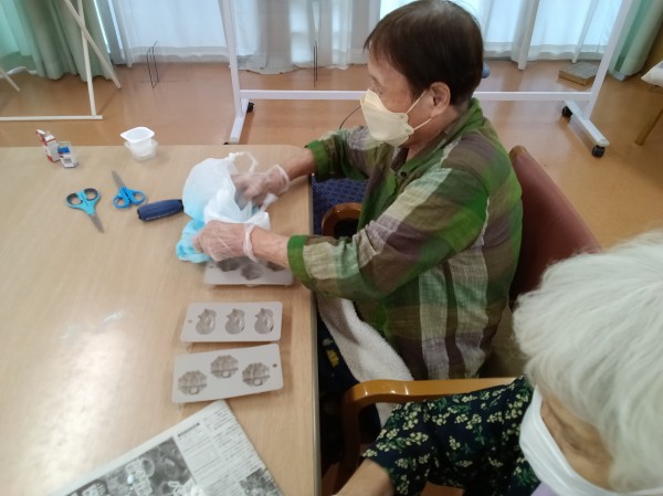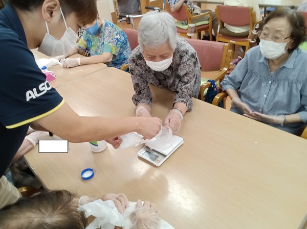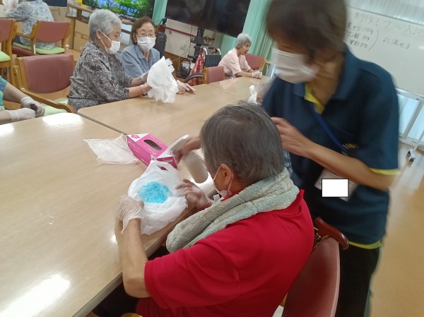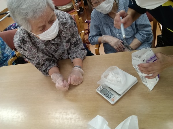 と言え、そこにもう一工夫してみるとどうなるのか・・・そこで、今回ご紹介するのは今週月曜日に行いました「制作レク~入浴剤作り~」となりますー♪