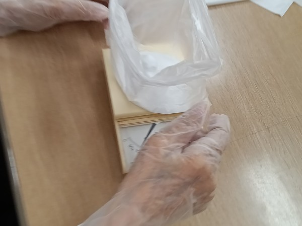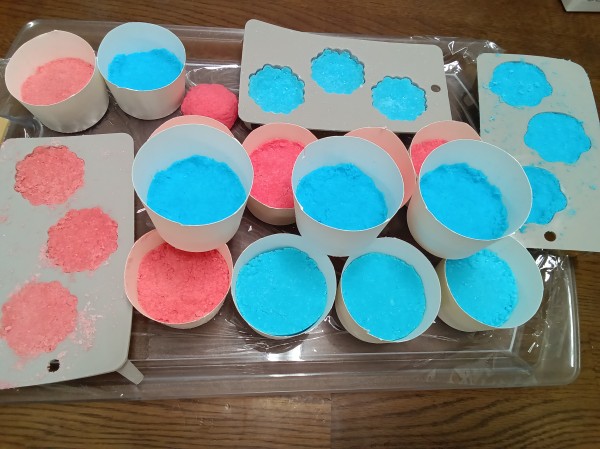 次は形を作っていきます。型の元となる物を用意しましたので、そちらに完成した粉をいれていきます