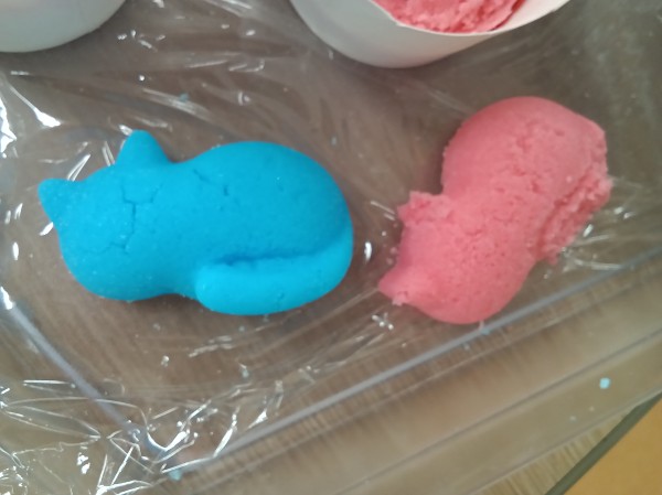 揉み終えたら、次は食紅・アロマオイルを入れていきます。これで色と香りがつきますね
