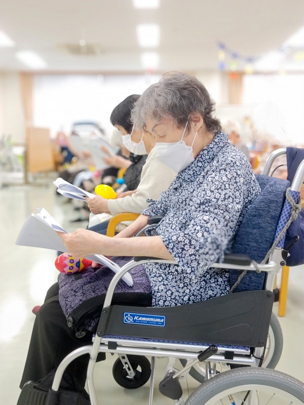 マラカスやタンバリンを振りつつしっかり声を出して歌いました♪