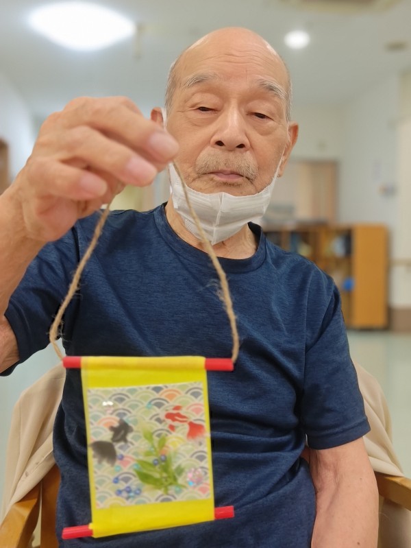 ストローに選んだ薄紙をつけて掛け軸風にしたものの真ん中に袋を貼り付けて完成!