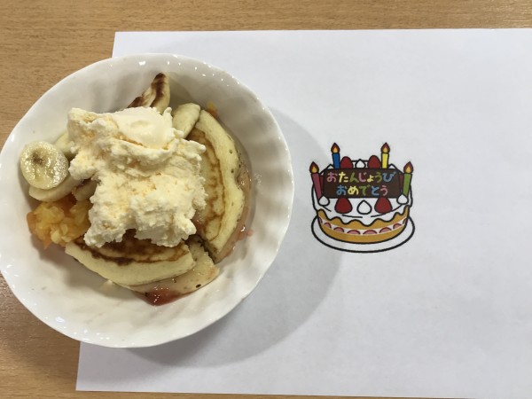 ホームでは、夏生まれの方の合同お誕生日会を開きました♪今回は皆様に手伝って頂きながらホットケーキをたくさん作りました!人数分の生地を混ぜるのは結構力が入ったかもしれませんね!ありがとうございます♪ホットプレートで焼くときれいに仕上がりました!アイスと、ジャムをトッピングして完成です♪「ハッピーバースディトゥーユー」を合唱してから、美味しく召し上がりました。M様、K様、Y様、N様お誕生日おめでとうございます!これからも楽しく笑顔でホームで過ごして下さいね♪