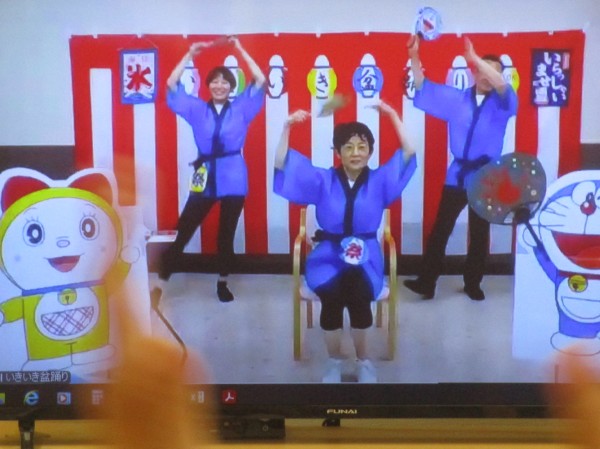 「いきいき盆踊り」が始まると、テレビ画面に釘付けなり、トレーナーの動きに合わせ、盆踊りを堪能されていました。