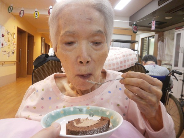 8/27 9月のお誕生日者の合同誕生日が開かれました。今回は2階が3人。1階が1人。1階のTさんが2階に上がり、皆でお祝いしました。