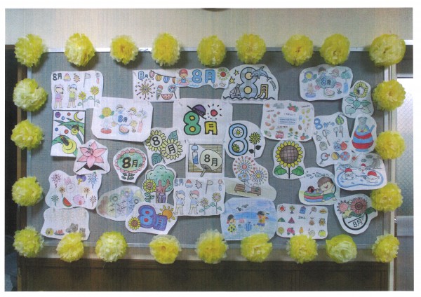 この壁面があると、フロアがとっても明るくなります。いつも皆様のご協力で素敵な飾りができ、この壁を見ながら会話も弾みますね♪