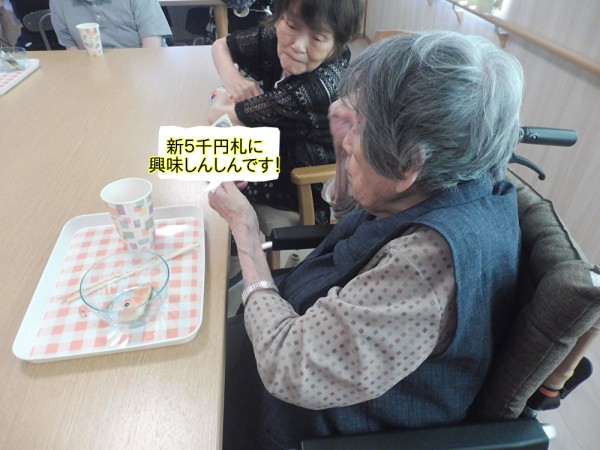 新5千円札が職員の手元にきました。1F、2Fの利用者様にお見せしました。