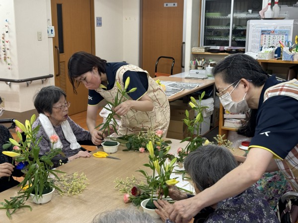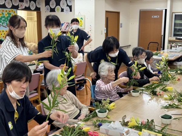 今月もデイサービス遊・府中さんで行われるフラワーアレンジメント教室に参加させていただきました。