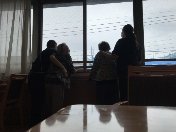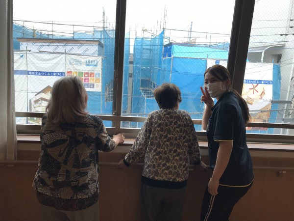 窓の外には建設中の建物があるので、それが気になるようですね( ^)o(^ )