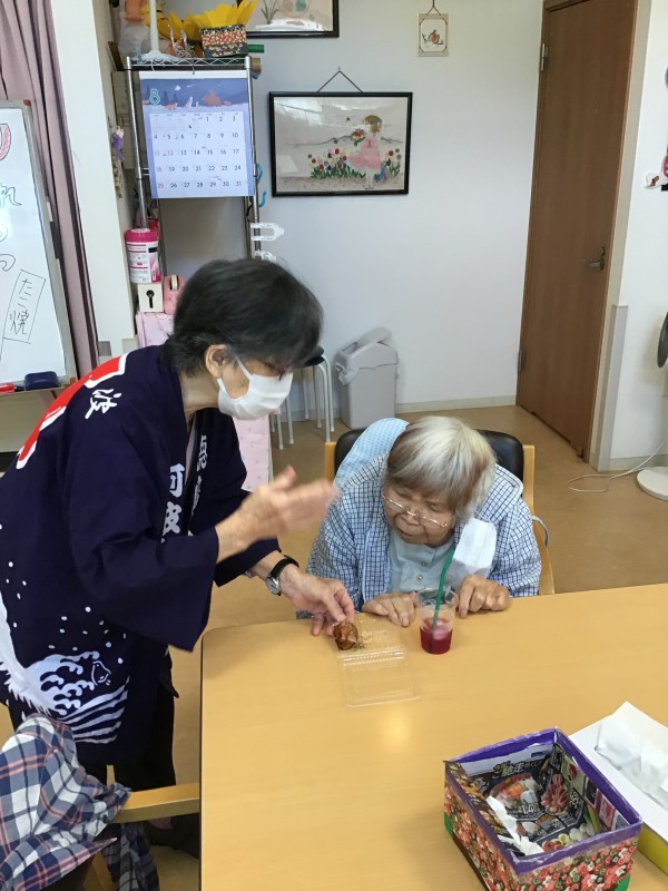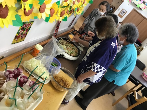 おやつは屋台風に焼きそば・たこ焼き・チョコバナナ・ジュース(赤紫蘇・梅)など、皆様お好きなものを選んでいただきました(*^^*)