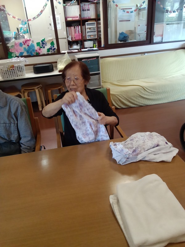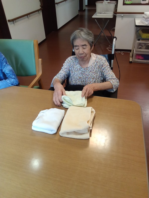 午後は洗濯物たたみ等の家事をお願いしたり、DVDなどで体操など身体を動かしていただいています
