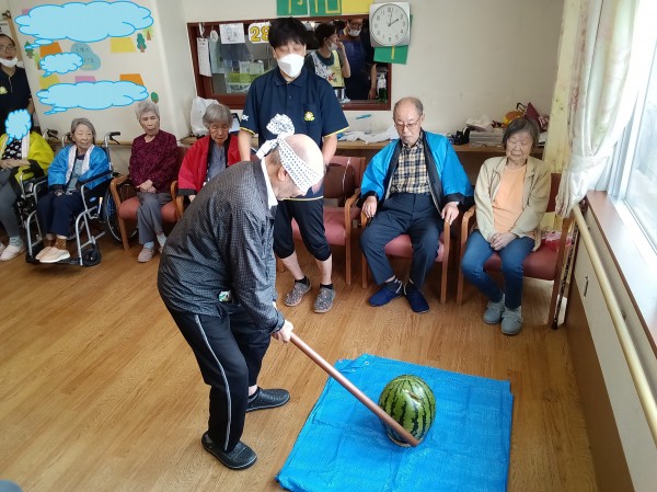 ご利用者様・職員で協力し、大きなスイカを割りました('ω')ノ