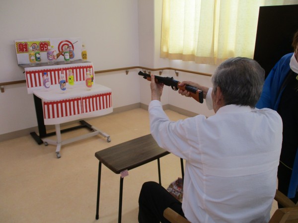 各模擬店では、必死でゲームに取り組むご利用者様んも姿があちこちで見られ、また綿あめを笑顔で頬張っているご利用者様など、みなさん童心に戻って楽しまれていました。
