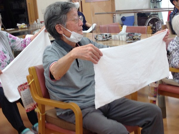 早速タオル体操を始めていますねー。元気いっぱい!