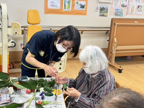 今回は葉を工夫して活けました!そこに皆様工夫してお花を飾りました!