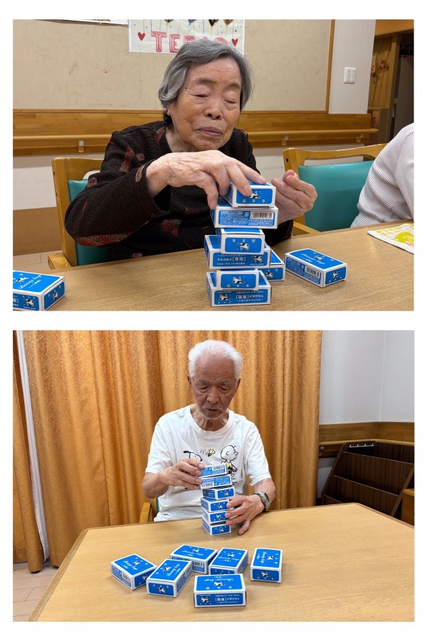 みんなの家・川越寺尾です!ぶ(^^♪石鹸の空箱を積み上げてタワーを完成させました(`・ω・´)b✨