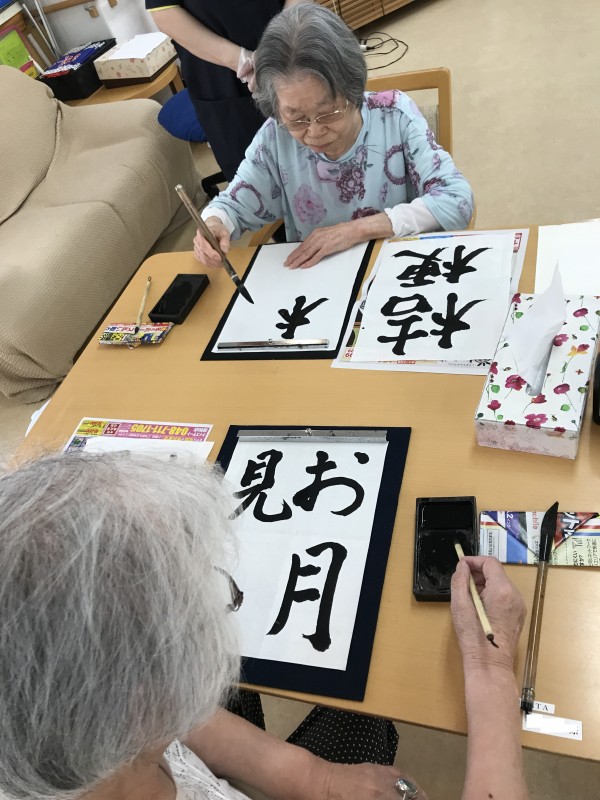 定期的に開催しております書道の時間。月代わりということもありまして新しい文字を書き記しました。