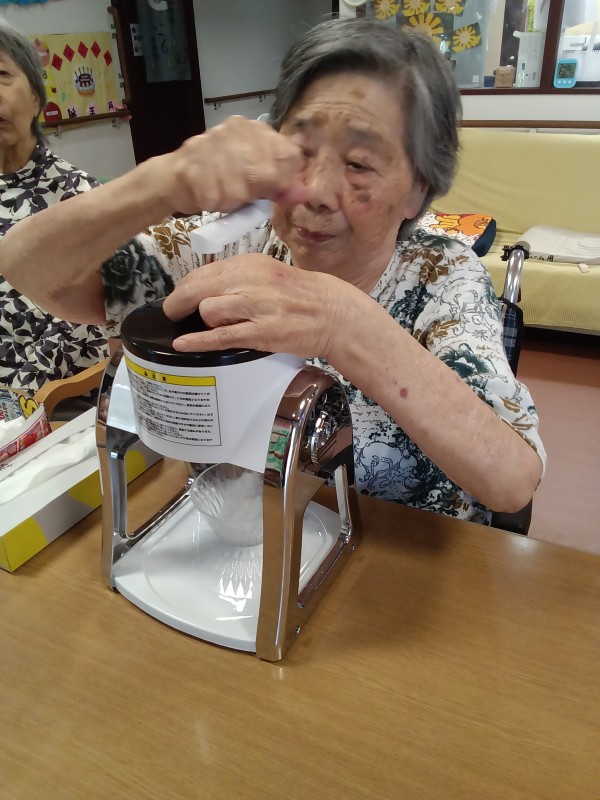 かき氷を入居者様ご自身で作っていただきました(とても素敵ですよね)