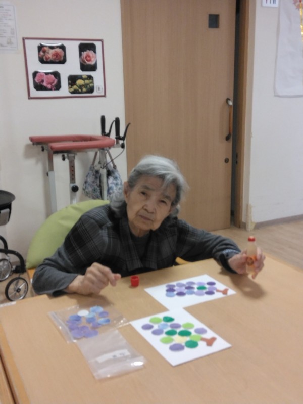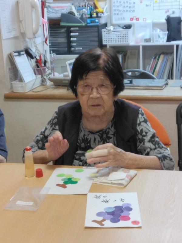 レクリエーション活動で「ぶどう貼り絵」をしました(((o(*゚▽゚*)o)))