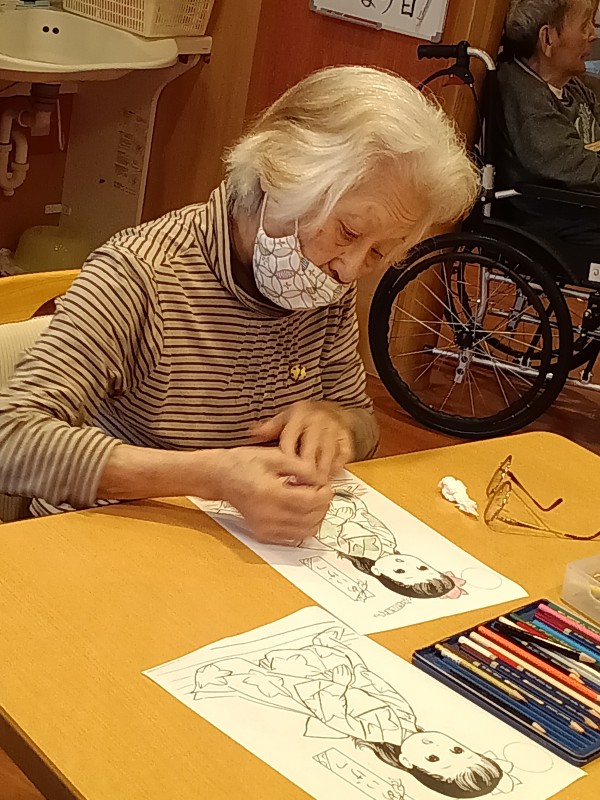 きいちの塗り絵を、色えんぴつにて、一生懸命、塗って下さりました(^^♪
