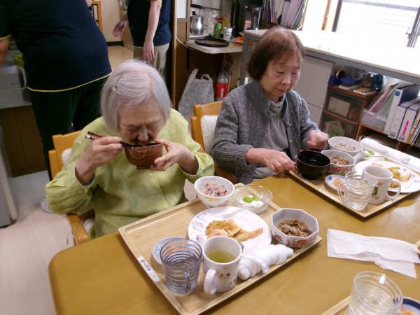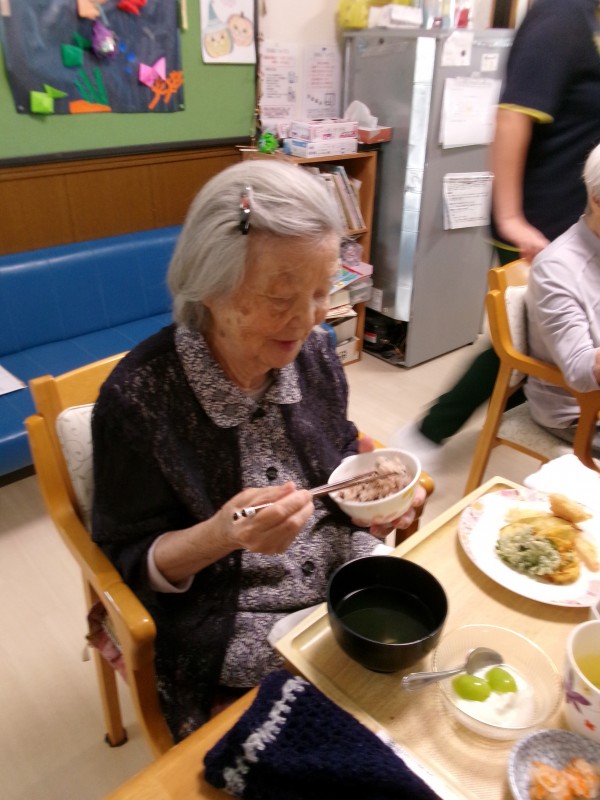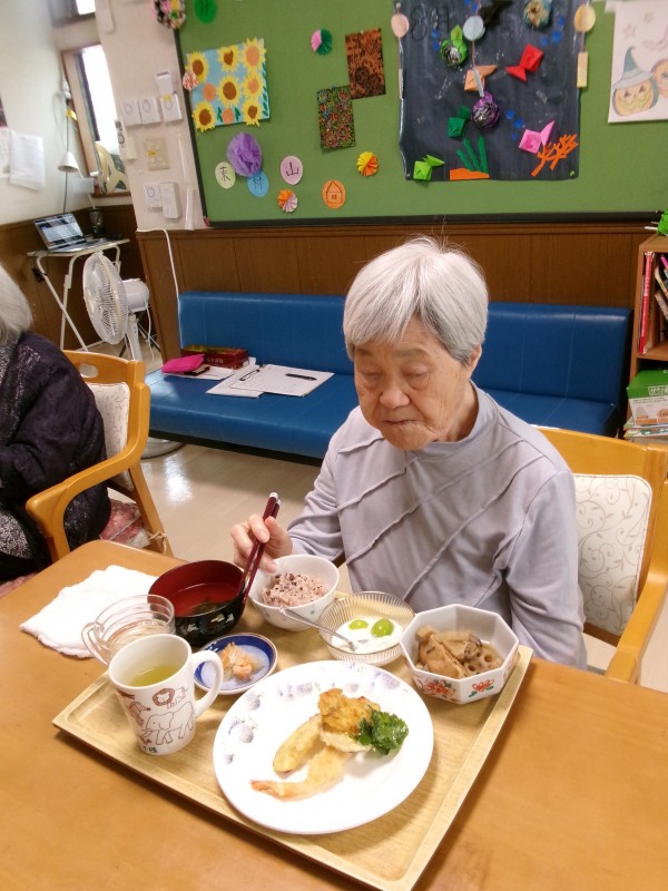 本日は敬老の日ということで昼食にお赤飯と天ぷらをご用意いたしました。