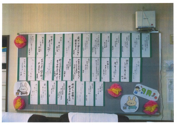 本日午後のレクリエーションは【川柳】です。お題は「秋」まだまだ暑い日が続きますが、秋をイメージしながら句を作っていただきました。秋といえばおいしい食べ物、花、お月見やトンボも多く詠まれていました。皆様それぞれに思いのこもった句、素晴らしいですね♪