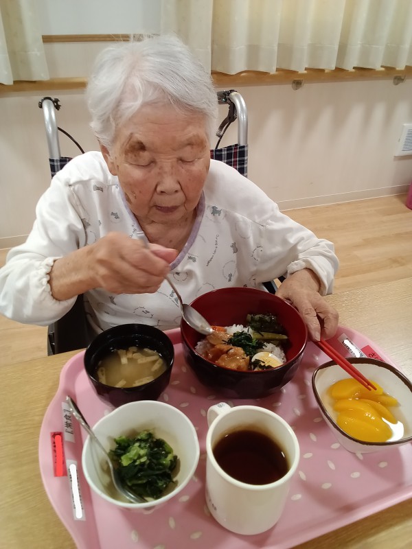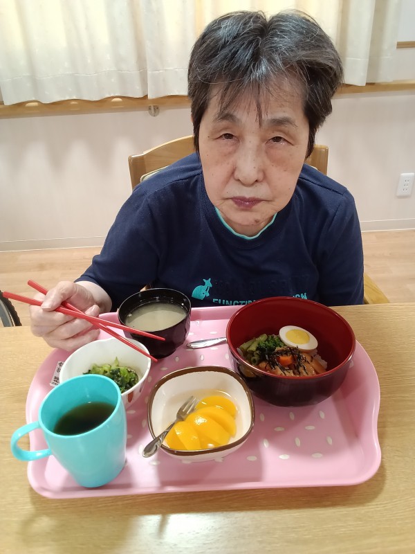 今年、9月17日は中秋の名月♡ホームの夕食メニューは①お月見・鶏味噌焼き重②青梗菜のピーナッツ和え③黄桃④お味噌汁です♪特別メニューに皆さん「美味しそう〜♪」と、あっという間に完食でした~(๑´ڡ`๑)